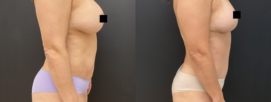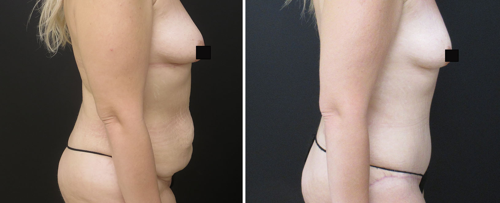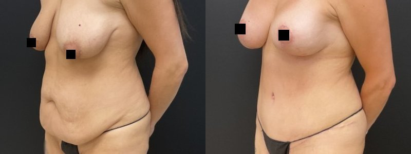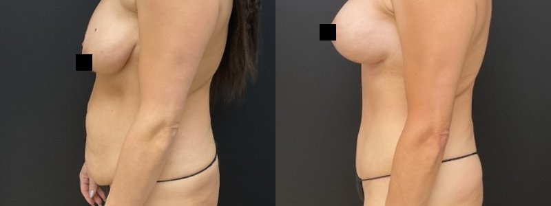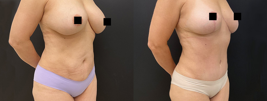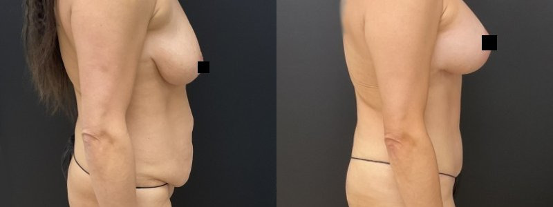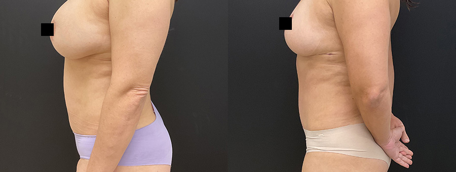 This 52 year-old (5’1” tall, 68 kg) underwent removal of breast implants (175cc) in combination with a breast lift. She also underwent an abdominoplasty with liposuction to the anterior abdomen and flanks. Post-op photographs are taken 3 months after surgery.