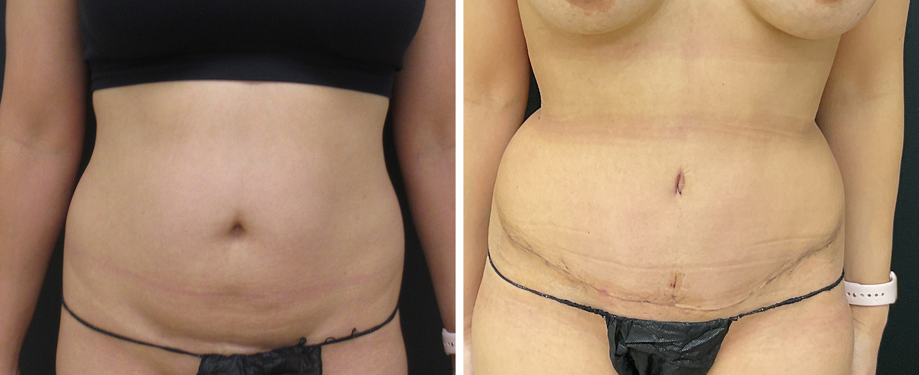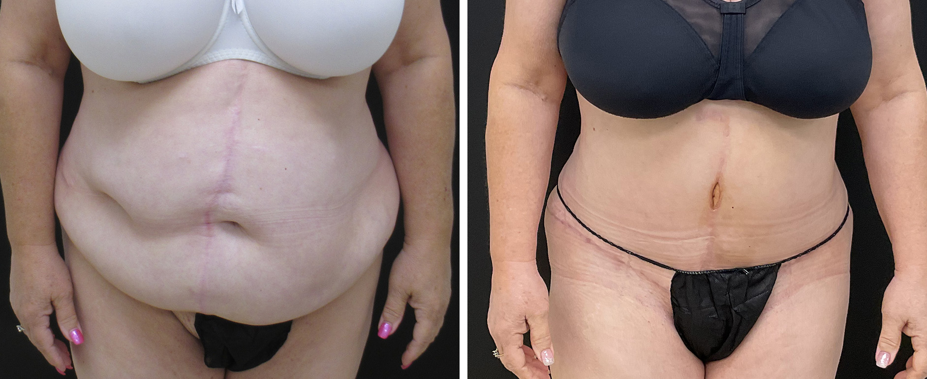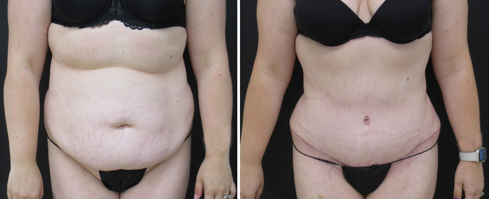 38 year old lady, 5’6”, 185 lbs. Abdominoplasty with liposuction to anterior abdomen and flanks