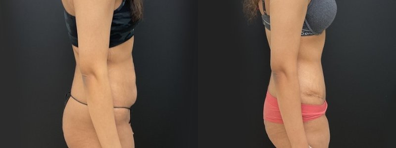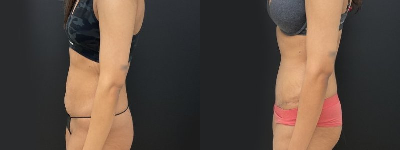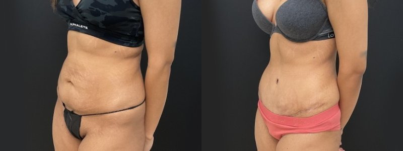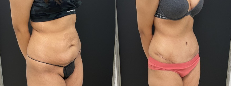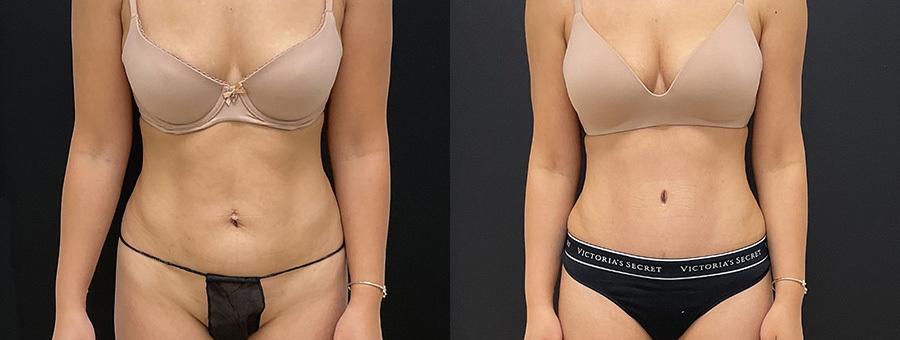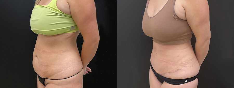 This 22-year-old lost over 90lbs in weight. At the time of her surgery, she was 5’11” and weighed 150lbs. She underwent an abdominoplasty with supplemental liposuction.