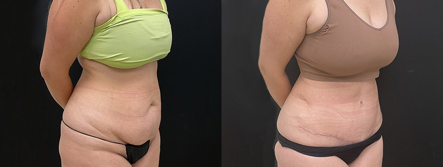 40-year-old, 5’4″, 165 lbs. Tummy tuck with liposuction to abdomen, flanks, and lateral thighs. Photos at 3 months post-op.