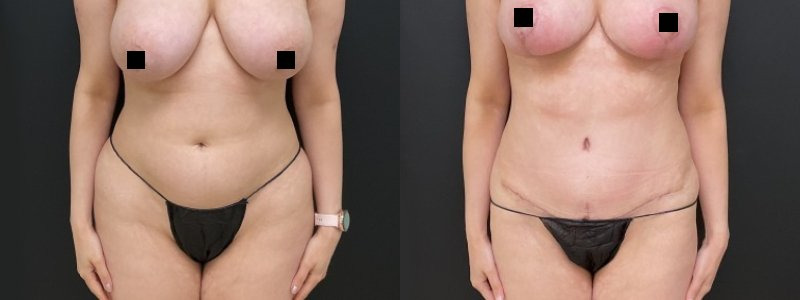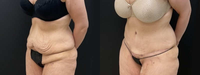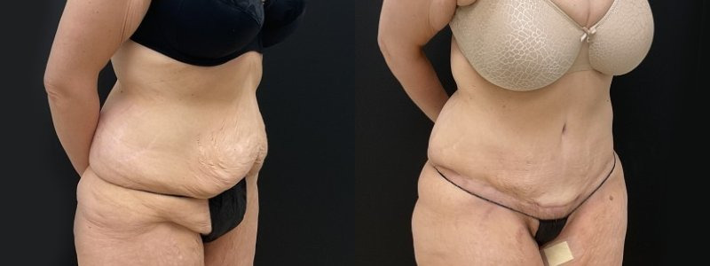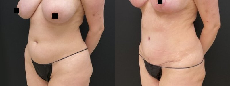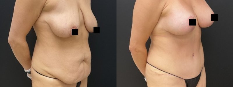 42 year old lady, 5’5”, 155 lbs. Results from breast lift and reduction, abdominoplasty with trunk/thigh liposuction