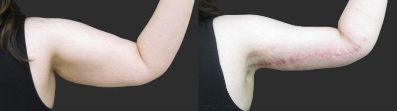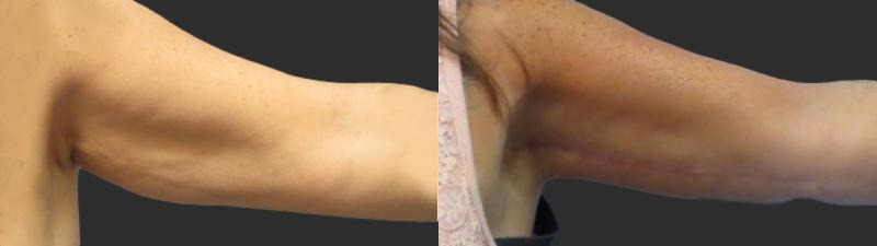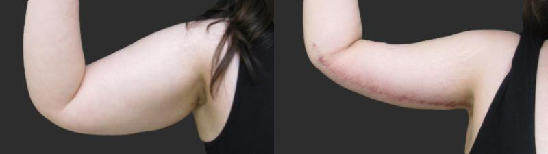 This 35-year-old (5’0”, 110lbs) underwent arm liposuction to address stubborn fat deposits on the back of her arms. Post-op photographs are taken three months after surgery.