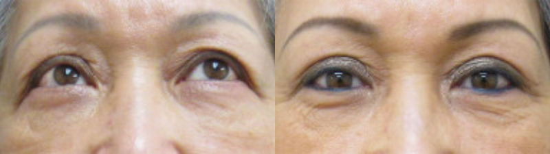 This 55 year old lady was concerned about the drooping in her upper eyelids. Dr Tregaskiss performed an upper eyelid lift (blepharoplasty).