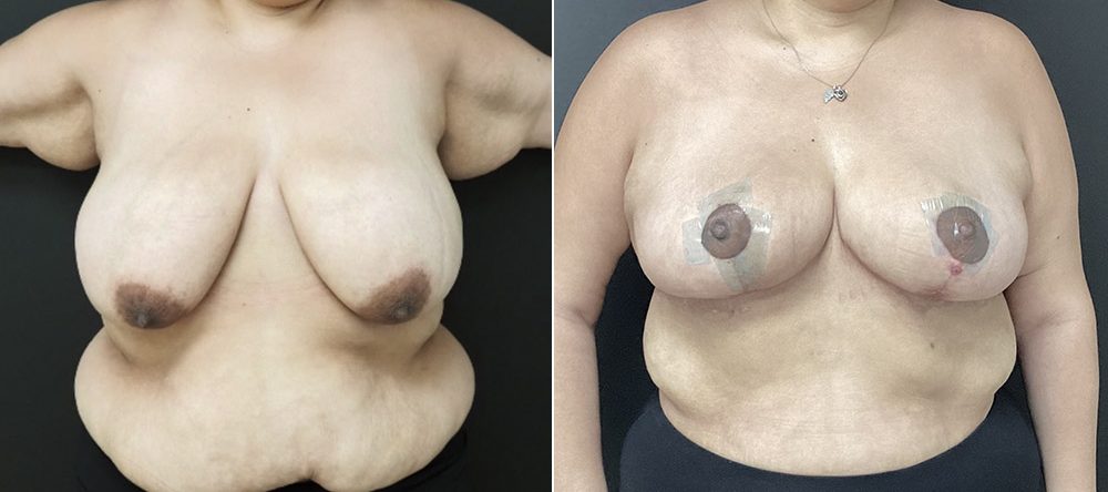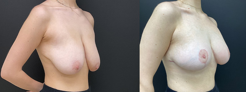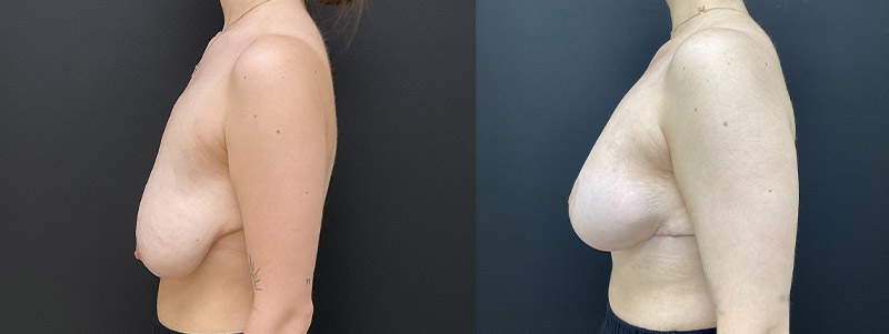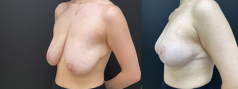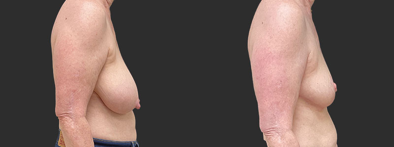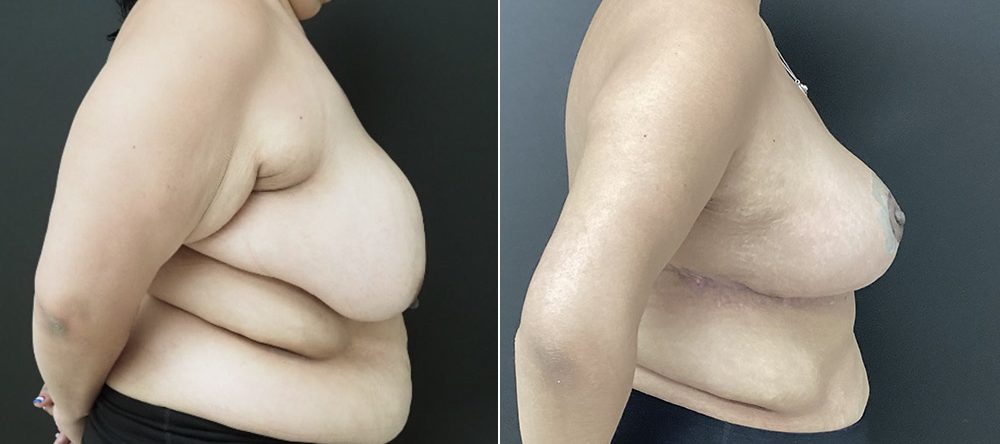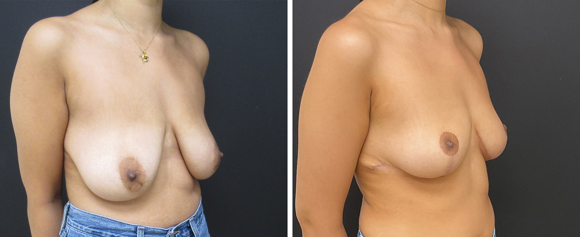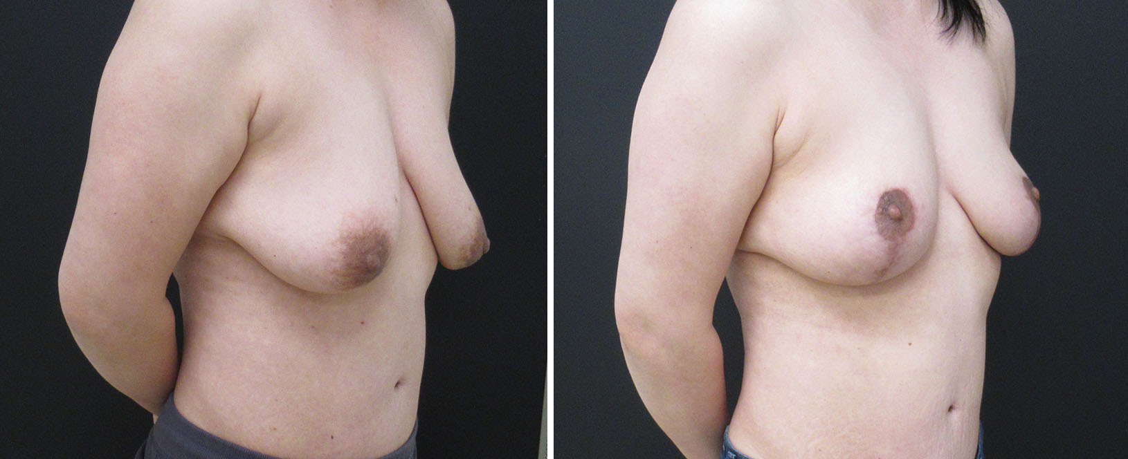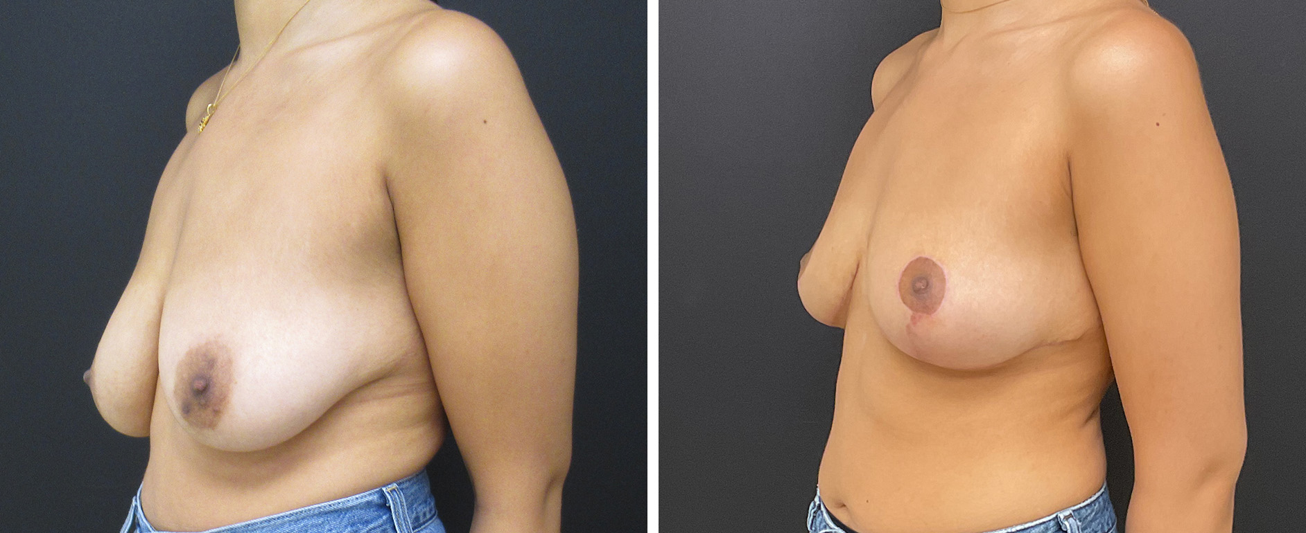 Bilateral mastopexy for massive weight loss patient, 5’5″, 154 lbs. Photos at 3 months post-op.