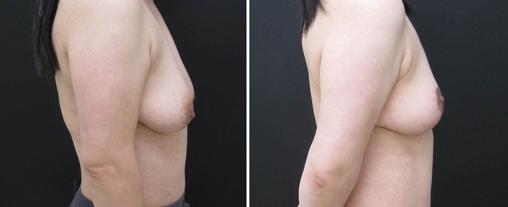 This 32-year-old lady (5’2”, 103 lbs) underwent a breast augmentation with 250cc high-profile silicone implants. Post-op photographs are taken 3 months after surgery.