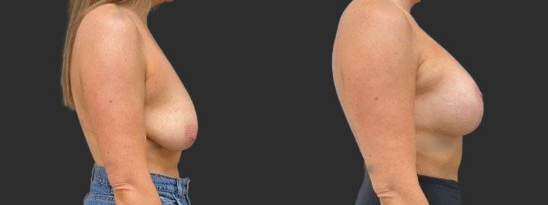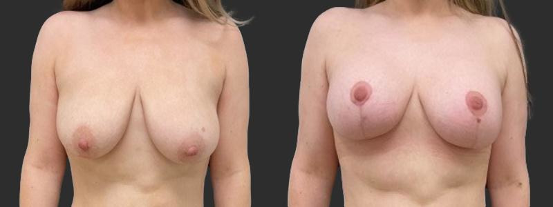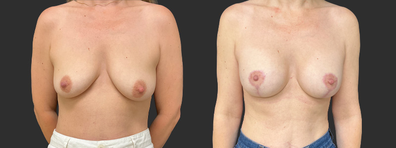 Our patient came to see Dr Roller seeking breast rejuvenation after breastfeeding two children. Dr Roller performed a wise-pattern (anchor scar) breast lift and breast augmentation with 275cc moderate profile silicone implants.