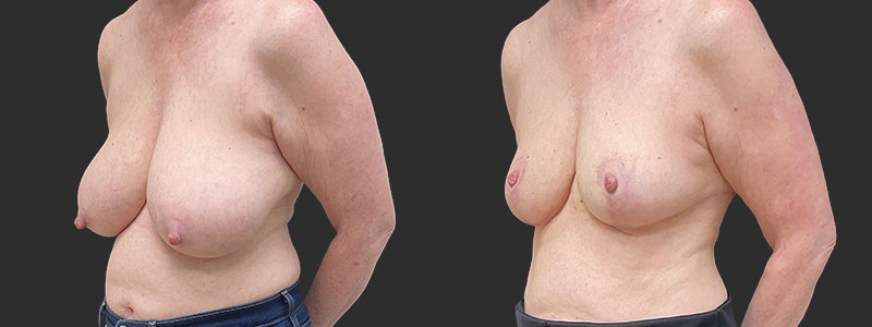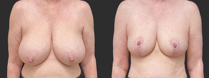 This 59 year old lady, 5’7 and 170 lbs mother of 2, had wanted an increase in breast volume for many years. Dr Tregaskiss performed a sub-glandular (over the muscle) breast augmentation, using a 4.5cm inframammary fold incision (breast crease), using 425cc moderate profile silicone implants.
