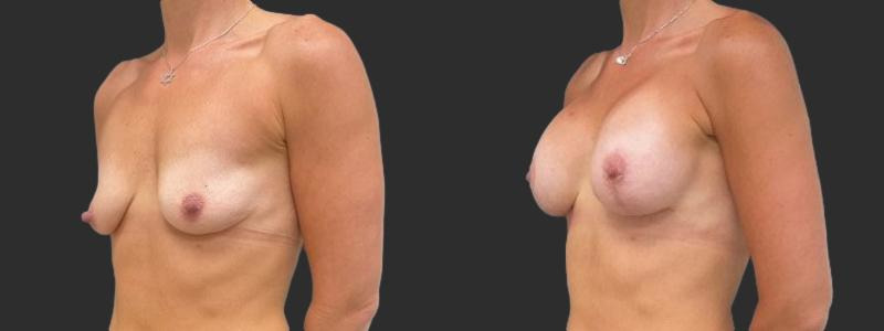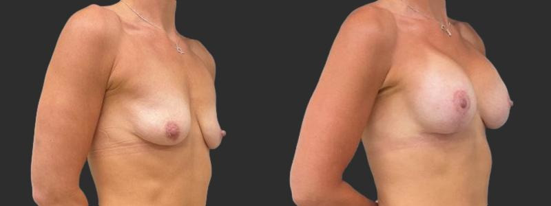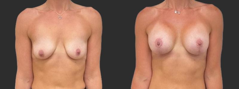 Our client met with Dr Roller regarding her breasts and wished to increase the volume. Dr Roller performed a breast augmentation using 240cc high profile silicone implants.