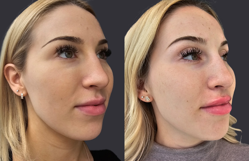 Patient wanted her jawline and chin more defined, as well as lips fuller.