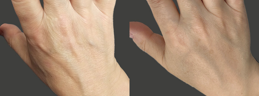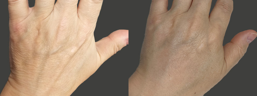 Patients concern was crepey wrinkly skin lacking volume. Revanesse was used to help plump hands and increase volume