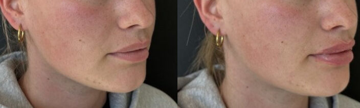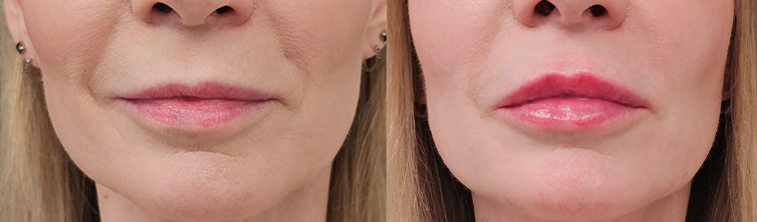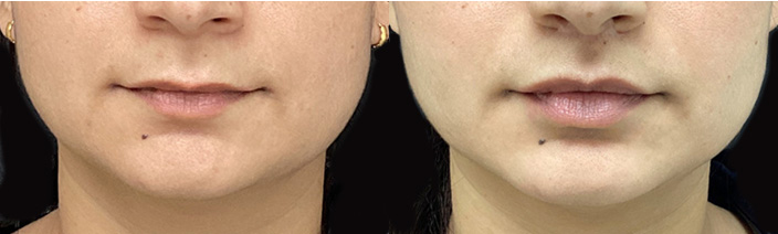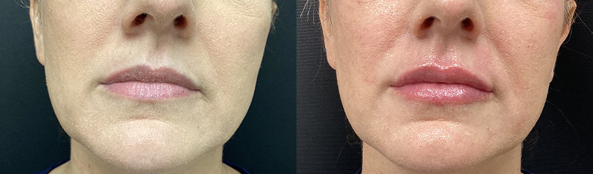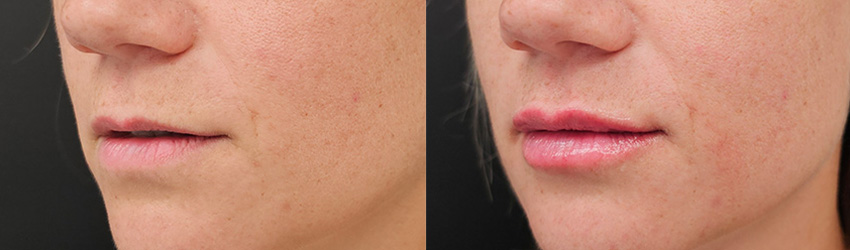 Result: Lips have more definition and volume and appear more hydrated. Temporary swelling may occur and will subside over the next few days.