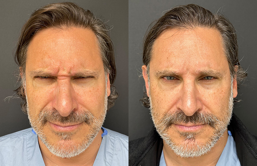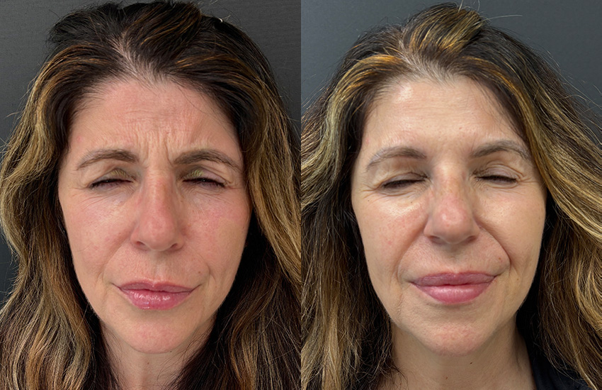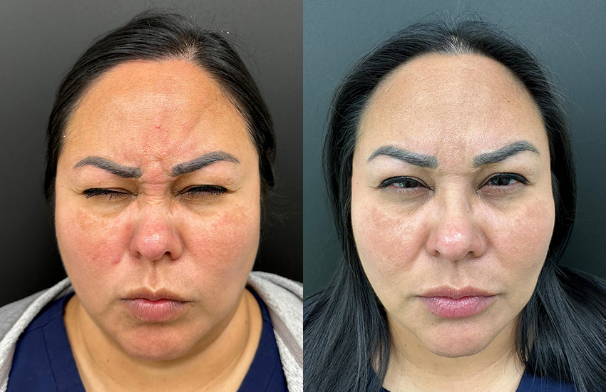 Glabeallar and frontalis were treated with Dysport to address fine lines and wrinkles